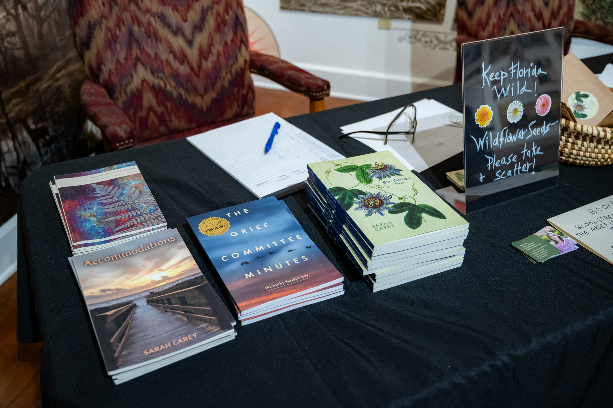 When Saint Julian Press published my debut full-length, The Grief Committee Minutes, in 2024, I knew I had to celebrate that in a public way as well; a full-length collection represented an achievement I had long aspired to. I held this launch event in a new venue, the Matheson History Museum, and made a bigger deal of it than the others, sending postcard invitations and having a book cake, which somehow I’d heard was a thing. About 40 people attended, and I didn’t think my heart could ever be more full.